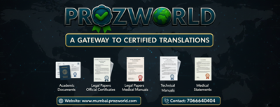 Proz World Private Limited, based in Mumbai, is your trusted partner for certified translations of legal, corporate, academic, and personal documents. Serving Mumbai, Navi Mumbai, Thane, Powai, Borivali, Andheri, Chembur, and the entire MMR region, we provide multilingual translation services recognized by courts, embassies, universities, banks, and government departments.