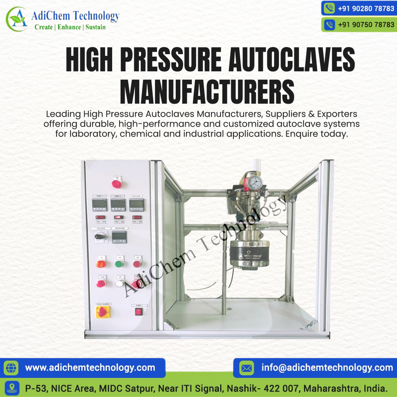 Looking for reliable High Pressure Autoclaves Manufacturers who deliver precision, durability, and performance? At Adichem Technology, we design and manufacture advanced high-pressure autoclaves engineered for laboratory research, chemical processing, pharmaceuticals, and industrial applications.